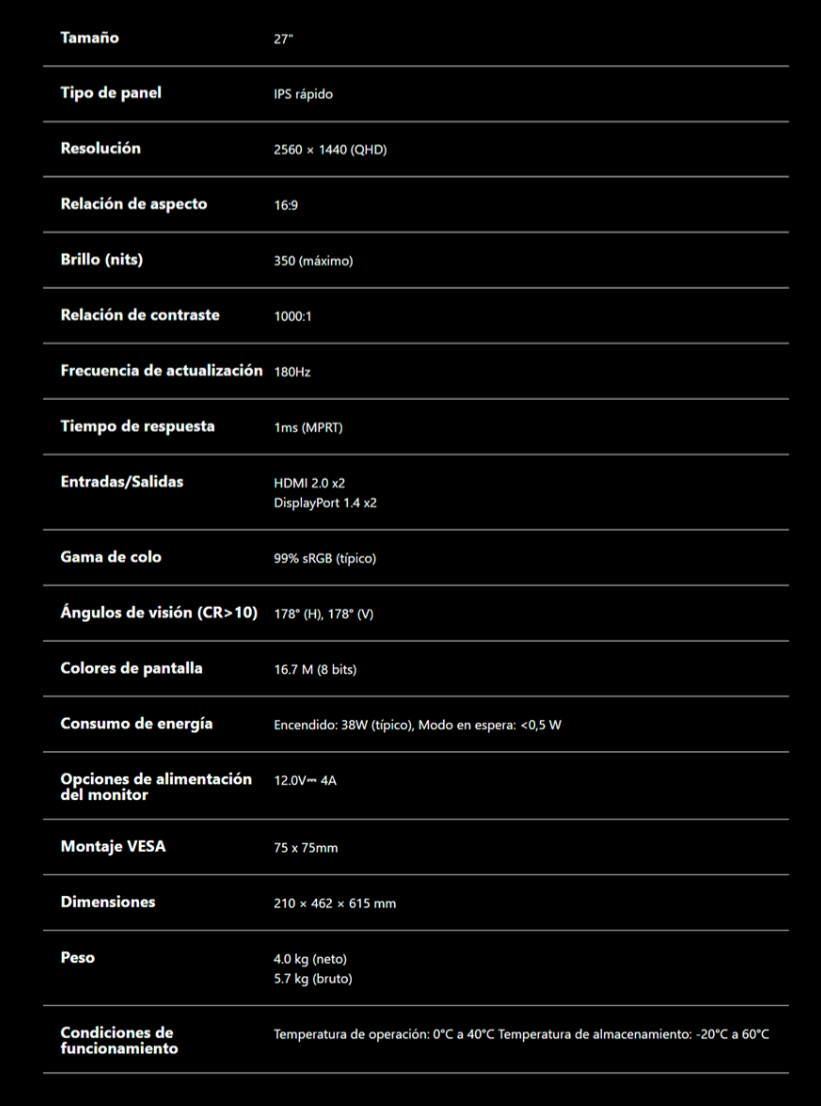 Es un monitor sólido para quienes buscan dar el salto de 1080p a 1440p sin sacrificar una alta tasa de refresco. Por su panel IPS, también es adecuado para tareas de productividad o diseño básico, aunque su enfoque principal es el rendimiento en juegos de acción rápida.
